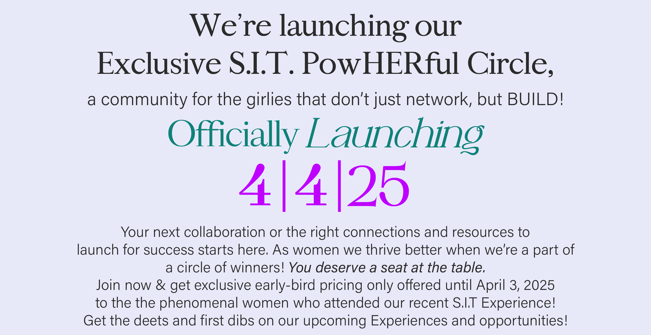 ✔ Get exclusive access to our S.I.T. Summits and members-only events, like our new S.I.T. ‘Intimate Series’ we’ll be hosting in July!